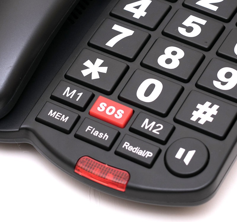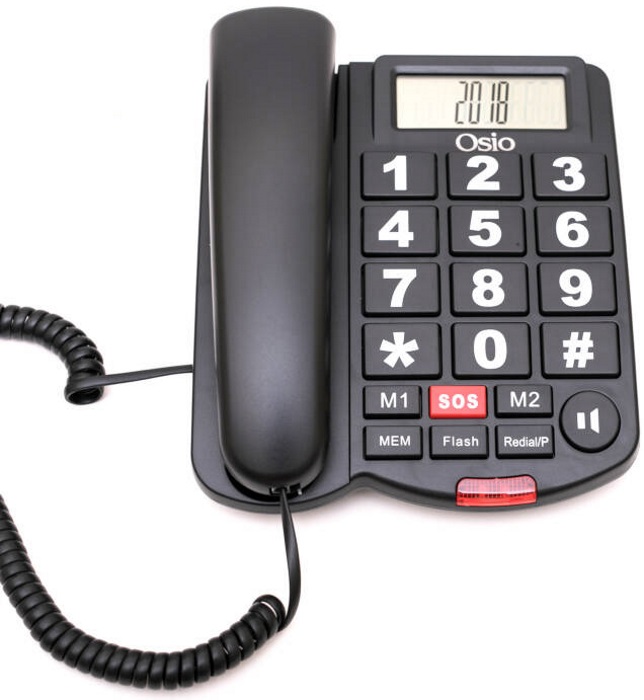 Ενσύρματο τηλέφωνο Osio OSWB-4760B με μεγάλα πλήκτρα για ευκολία στη χρήση από άτομα μεγάλης ηλικίας ή με μειωμένη όραση. Διαθέτει LED που αναβοσβήνει όταν σας καλούν, δυνατό μικρόφωνο και ακουστικό και μεγάλη οθόνη. Επίσης διαθέτει 2 κουμπιά ταχείας κλήσεις και κουμπί έκτακτης ανάγκης για κλήσεις με το πάτημα ενός κουμπιού και 10 μνήμες για τους σημαντικούς σας αριθμούς. Τηλεφωνική Συσκευή: Ενσύρματη
