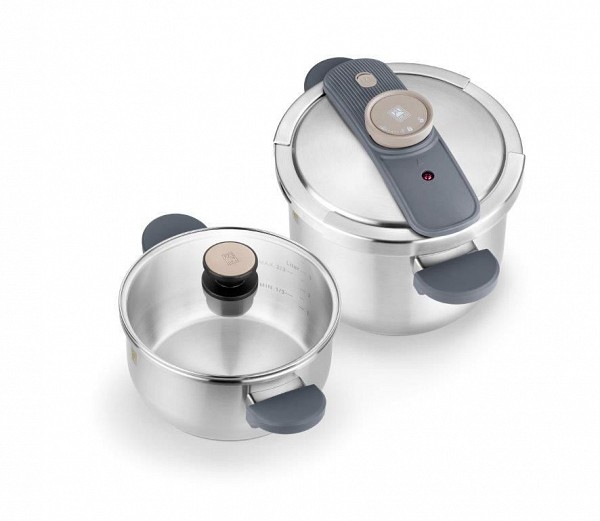 Το σετ Emotion 4+7 lt της Bra είναι μια ολοκληρωμένη λύση για όποιον θέλει ποιότητα, ασφάλεια και πρακτικότητα στην κουζίνα του. Περιλαμβάνει δύο ξεχωριστές χύτρες ταχύτητας (4 λίτρα + 7 λίτρα) που κατασκευάζονται από ανοξείδωτο ατσάλι 18/10, εξασφαλίζοντας μεγάλη αντοχή στη φθορά και διάρκεια στον χρόνο. Διαθέτουν βάση διαχύτη κατάλληλη για όλους τους τύπους εστιών, συμπεριλαμβανομένων των επαγωγικών, ώστε η θερμότητα να διανέμεται ομοιόμορφα. Η πίεση μπορεί να ρυθμιστεί μεταξύ ~0,2 kg και ~1 kg, ανάλογα το φαγητό, μέσω μεμβράνης που λειτουργεί ως ρυθμιστικό πίεσης. Υπάρχουν δύο επίπεδα πίεσης — χαμηλό και υψηλό — ώστε να μπορείτε να μαγειρεύετε πιο ευαίσθητα υλικά με προσοχή ή να επιταχύνετε το μαγείρεμα όταν χρειάζεται. Η στεγανοποίηση της χύτρας είναι απόλυτη, γεγονός που μειώνει την κατανάλωση ενέργειας και βοηθά στη διατήρηση των αρωμάτων, της γεύσης και των θρεπτικών συστατικών. Το άνοιγμά της και το κλείσιμό της είναι πολύ εύκολα, με ενσωματωμένο σύστημα κλειδώματος (δεν ανοίγει αν η πίεση μέσα ξεπερνά ένα ασφαλές όριο). Οι μαλακής αφής λαβές από βακελίτη προσφέρουν άνετο και ασφαλές κράτημα, ακόμη και όταν η θερμοκρασία ανεβαίνει. Το σώμα των χυτρών μπορεί να πλυθεί στο πλυντήριο πιάτων. Το σετ περιλαμβάνει γυάλινο καπάκι ώστε να χρησιμοποιείται και ως παραδοσιακή κατσαρόλα όταν δεν θέλετε πίεση.