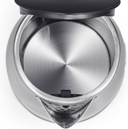 Βραστήρας με χωρητικότητα 1.7L, ιδανικός για καθημερινή χρήση. Διαθέτει παράθυρο νερού με ενδείξεις στάθμης που επιτρέπει τον έλεγχο της ποσότητας νερού. Η ελάχιστη ποσότητα νερού είναι 0.3L. Περιλαμβάνει αφαιρούμενο φίλτρο και αυτόματη απενεργοποίηση για ασφαλή χρήση. Το σύστημα ασφαλείας κατά του βρασμού χωρίς νερό εξασφαλίζει επιπλέον προστασία. Ο βραστήρας περιστρέφεται 360° στη βάση και διαθέτει αποθήκευση καλωδίου. Ο διακόπτης φέρει φωτεινή ένδειξη λειτουργίας, ενώ η ισχύς του είναι 220-240V, 50/60Hz, 1850-2200W.